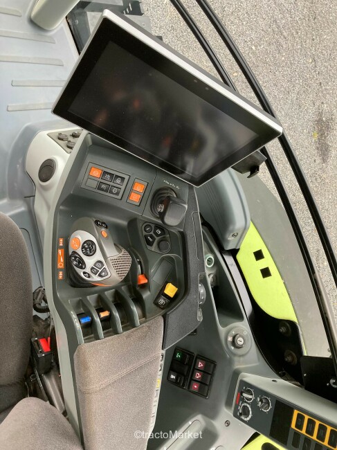 AXION 870 CMATIC S5 SUR MESURE, Terminal CEBIS avec fonction tactile, CMATIC avec 2 mémoires de régime moteur + CSM, CEBIS, ELECTROPILOT sans inverseur main droite, Freinage hydraulique avec freinage pneumatique, Pompe LS 150 L/min, 4 distributeurs électro-hydrauliques proportionnels, 2 sorties hydrauliques AV + 1 ret., Transmission à variation continue CMATIC, Vitesse maximale 50 km/h, Pont avant PROACTIV freiné, Prise de force 540 ECO + 1000/1000 ECO tr/min, Puiss. nomin. homol. 284 ch, puiss. maxi. homol. 301 ch, ECE R120, Cabine avec suspension en 4 points, Siège confort, tissu, pivotant et chauffant, à susp. semi-active