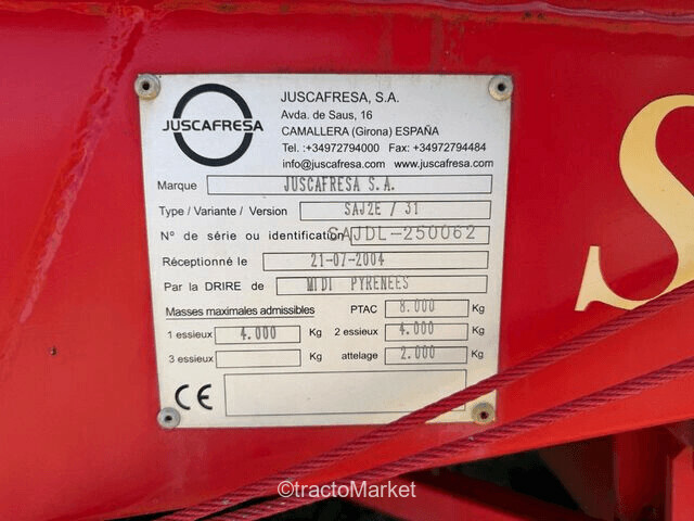 JUSCAFRESA SAJ 2518M3/ PICK UP 2M/FOND MOUVANT/ ESSIEUX TANDEM11.5/80R15.3 70%